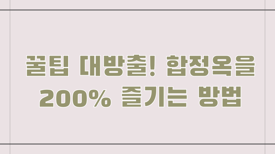 꿀팁 대방출! 합정옥을 200% 즐기는 방법