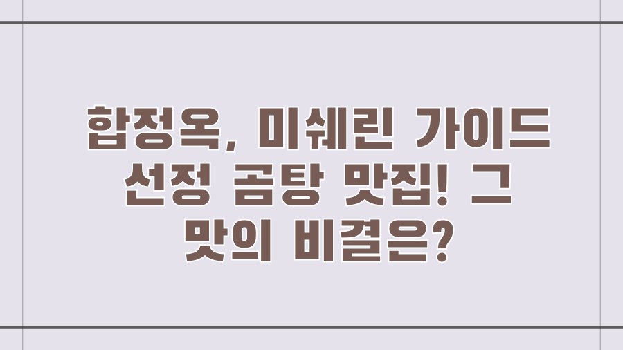 오늘은 합정동의 자랑, 미쉐린 가이드 선정 맛집 합정옥에 대해 자세히 알아보았습니다.
