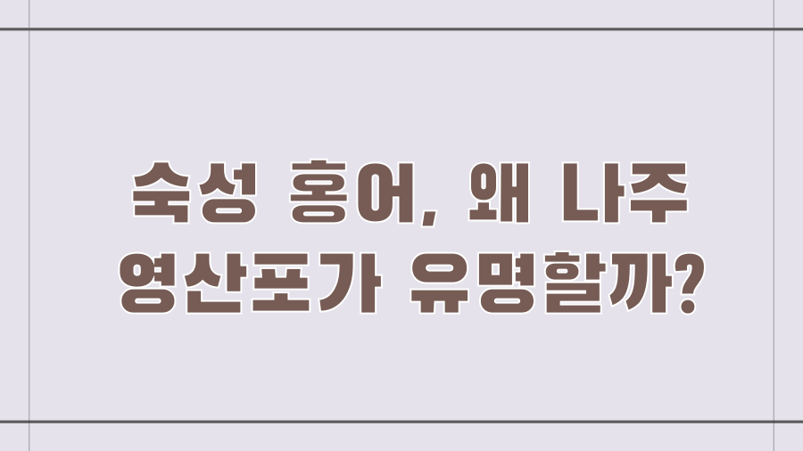 이러한 이유들로 인해 나주 영산포는 숙성 홍어의 원조이자 본고장으로 자리매김하게 되었습니다.