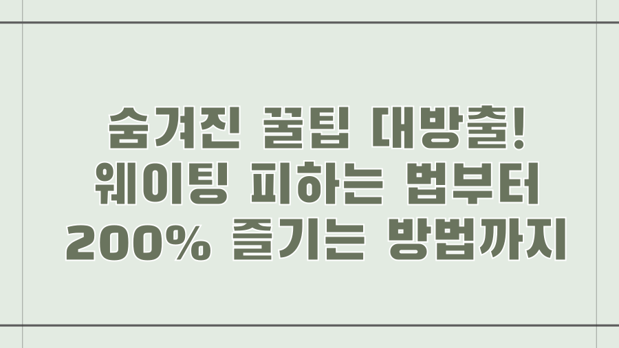 숨겨진 꿀팁 대방출! 웨이팅 피하는 법부터 200% 즐기는 방법까지