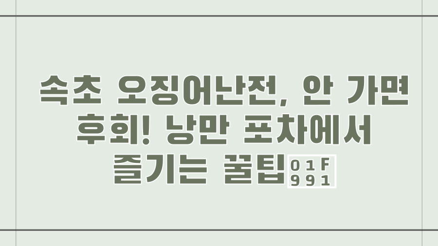 오징어회, 오징어찜, 오징어무침 등 다채로운 오징어 요리를 포장마차에서 즐기는 특별한 경험을 놓치지 마세요. 지금부터 속초 동명항 오징어난전의 모든 것을 파헤쳐 보겠습니다!