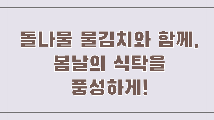 돌나물 물김치를 더욱 맛있게 즐기는 비법, 궁금하신가요?