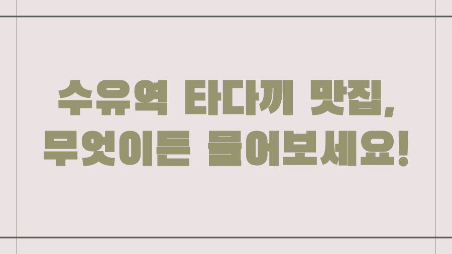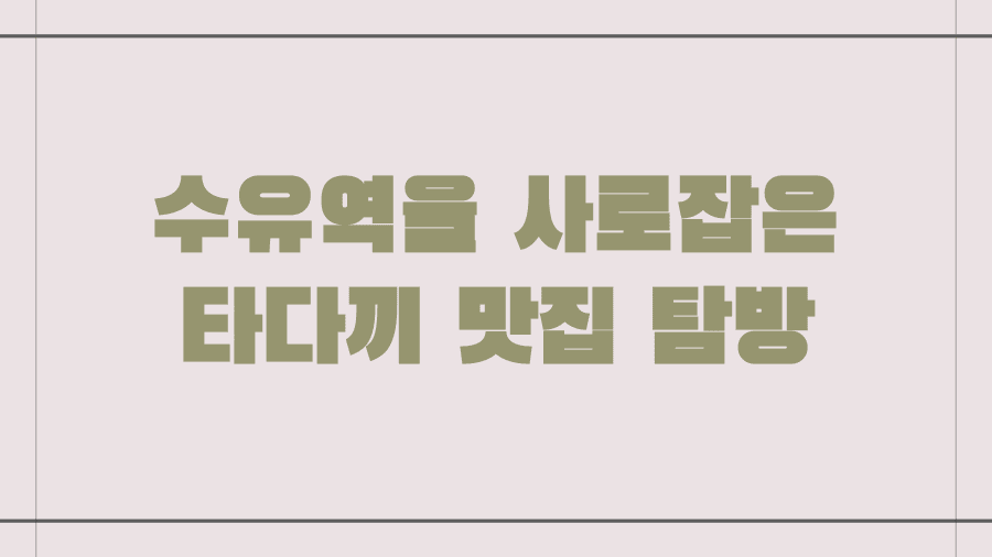 오늘은 여러분의 저녁 식사 고민을 덜어드릴, 수유역에서 맛있는 타다끼를 맛볼 수 있는 숨은 보석 같은 맛집들을 엄선하여 소개해 드리고자 합니다.