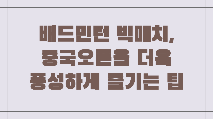 배드민턴 빅매치, 중국오픈을 더욱 풍성하게 즐기는 팁