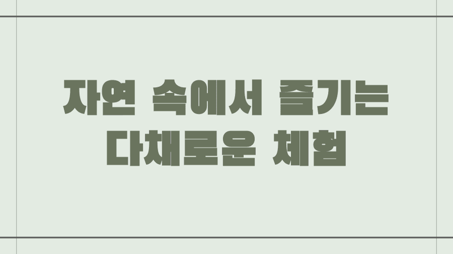 | 즐길 거리 | 체험 프로그램 (계절별 운영), 주변 관광 (산책로, 역사 명소 등) |
