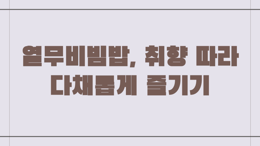 시간이 없을 때는 밥에 비벼 먹을 수 있는 비빔밥 키트나 즉석밥을 활용해도 좋습니다. 전자레인지에 데운 즉석밥 위에 썰어둔 열무김치와 비빔밥용 채소를 올리고, 시판 비빔장이나 간단하게 만든 양념장을 곁들여 비벼 먹으면 5분 안에 훌륭한 한 끼 식사가 완성됩니다. 자취생 혼밥 메뉴로도 안성맞춤이며, 남녀노소 누구나 좋아할 만한 맛입니다.
