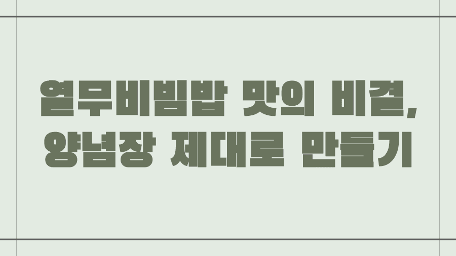 열무비빔밥의 맛을 좌우하는 가장 중요한 요소 중 하나는 바로 양념장입니다. 기본적인 고추장을 기반으로 다양한 재료를 황금 비율로 섞는 것이 핵심입니다. 먼저, 고추장 3큰술, 고춧가루 1큰술, 다진 마늘 1/2큰술, 설탕 1큰술, 매실청 1큰술을 넣어 잘 섞어줍니다. 여기에 간장 1큰술을 더하면 감칠맛이 더해지고, 참기름 1큰술을 넣어 고소함을 살려줍니다.