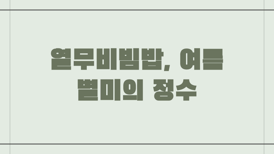 여름 하면 떠오르는 시원하고 아삭한 별미, 바로 열무비빔밥 아니겠어요? 입맛 없을 때 훌훌 비벼 먹으면 잃었던 입맛도 돌아오고, 건강까지 챙길 수 있어 많은 분들이 즐겨 찾으시는 메뉴인데요. 하지만 집에서 직접 만들려고 하면 은근히 까다로울까 봐, 또는 맛을 제대로 낼 수 있을까 봐 망설여지는 분들도 많으실 겁니다.