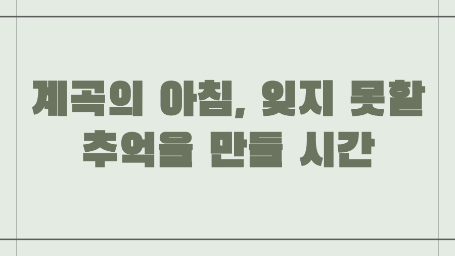 계곡의 아침, 잊지 못할 추억을 만들 시간