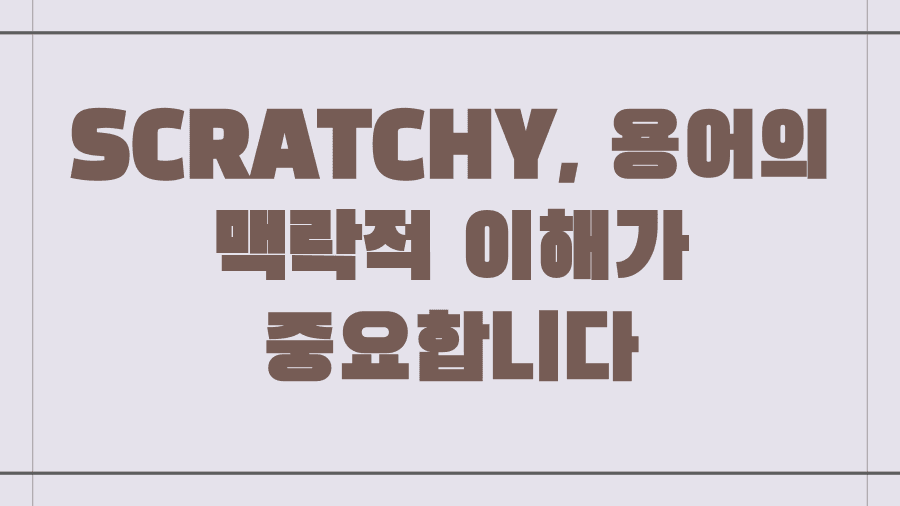 이렇게 맥락을 이해함으로써 'SCRATCHY'라는 단어의 의미를 더욱 정확하게 파악하고, 언어 구사 능력을 한층 더 향상시킬 수 있을 것입니다.