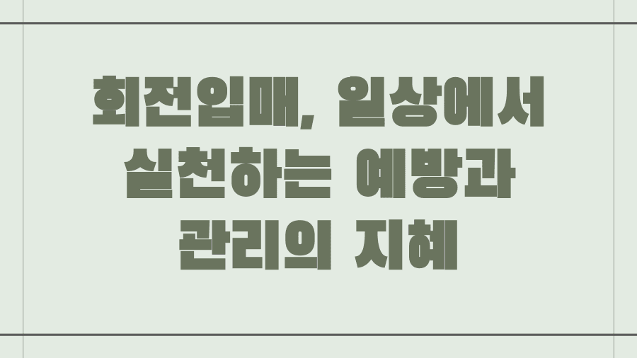 회전입매, 일상에서 실천하는 예방과 관리의 지혜