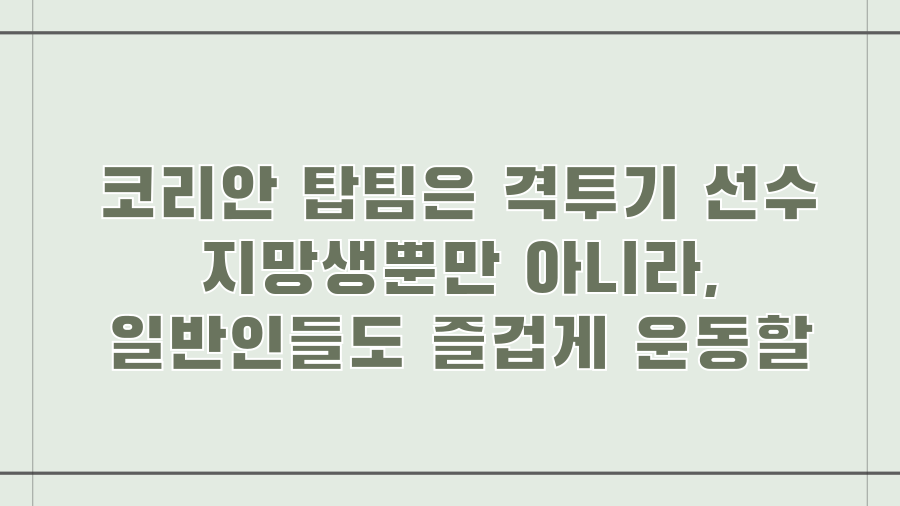 코리안 탑팀은 격투기 선수 지망생뿐만 아니라, 일반인들도 즐겁게 운동할 수 있는 다양한 프로그램을 제공합니다.