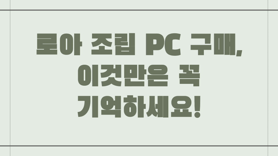 로아 조립 PC 구매, 이것만은 꼭 기억하세요!