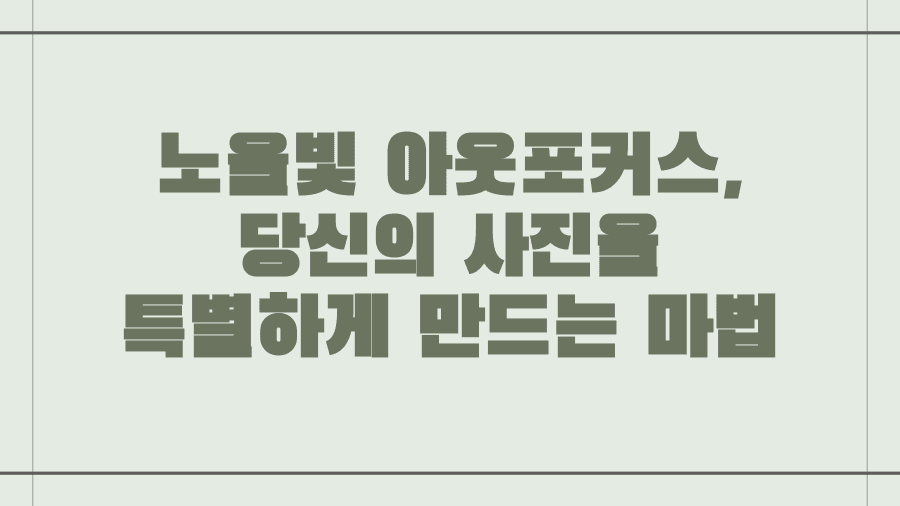 노을빛 아웃포커스, 당신의 사진을 특별하게 만드는 마법
