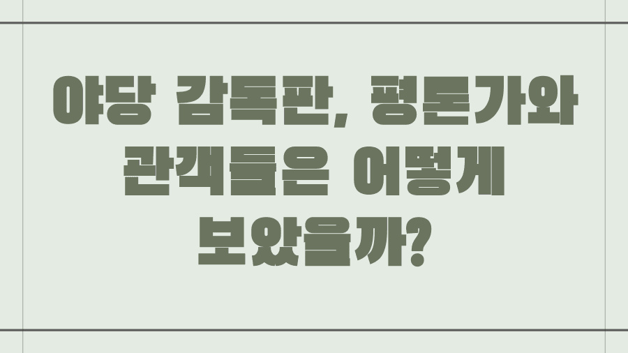 야당 감독판, 평론가와 관객들은 어떻게 보았을까?