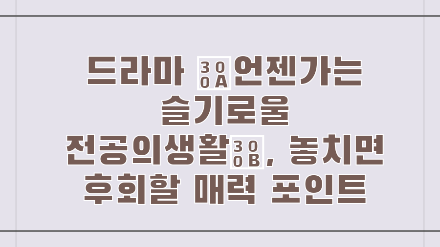 《언젠가는 슬기로울 전공의생활》은 단순한 의학 드라마가 아닌, 젊은 의사들의 성장과 사랑, 그리고 인간적인 고민을 담은 휴먼 드라마입니다.