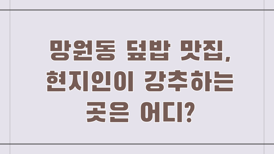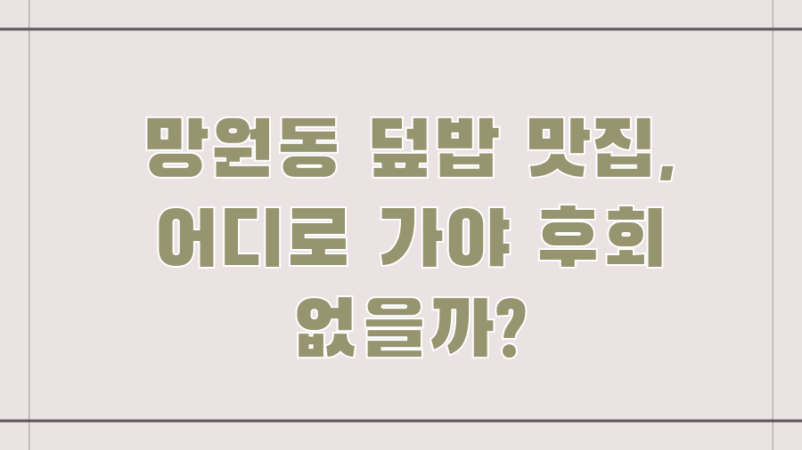이 글이 여러분의 맛있는 망원동 덮밥 탐험에 도움이 되었기를 바라며, 저는 다음에 더 유익한 정보로 돌아오겠습니다! 😉