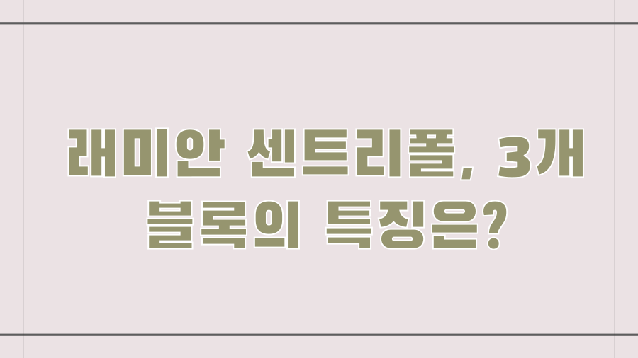 래미안 센트리폴은 3개의 블록으로 나뉘어 있으며, 각 블록마다 특징이 있습니다.