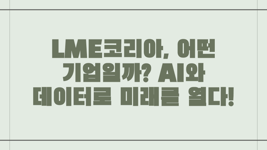 LME코리아, 과연 어떤 기업일까요? 낯설지만 혁신적인 기술과 솔루션으로 주목받고 있는 LME코리아에 대해 궁금증을 가지고 계신가요? 특히 IT 업계의 최신 동향에 민감한 분들이라면 LME코리아의 이름은 한번쯤 들어보셨을지도 모릅니다. 하지만 정확히 어떤 사업을 펼치고 있고, 어떤 기술력을 보유하고 있는지, 또 LME코리아와 함께 성장하고 싶은 분들에게는 어떤 기회가 주어지는지 명확하게 파악하기 어려울 수 있습니다.이 글에서는 LME코리아의 다채로운 면모를 속속들이 파헤쳐 보고자 합니다. LME코리아가 추구하는 비전부터 시작하여, 핵심 사업 영역인 데이터 분석, AI 솔루션, 컨설팅 등의 구체적인 서비스 내용, 그리고 LME코리아를 기술 혁신의 선두 주자로 이끄는 독보적인 기술력과 실제 혁신 사례들을 집..